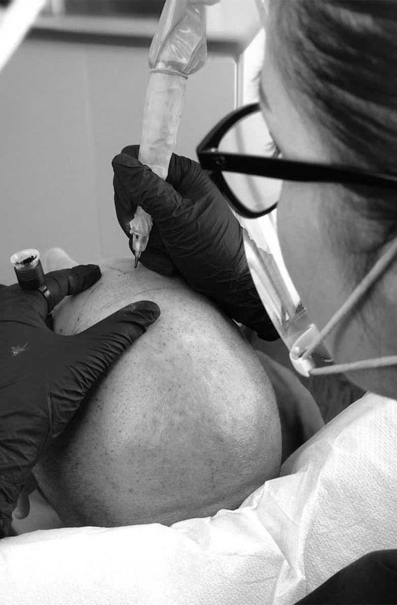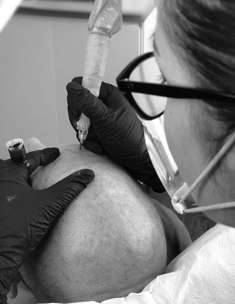 Nata nel lontano 1998 grazie ai miei maestri Toni Belfatto e il suo socio Ennio Orsini (tale termine era, infatti, inesistente fino a quella data) l’obiettivo per cui la Tricopigmentazione® è stata ideata è quello di creare l’illusione ottica della presenza di capelli laddove effettivamente non ci sono, pratica utilizzata per risolvere tutti gli inestetismi legati alla calvizie e agli esiti cicatriziali.