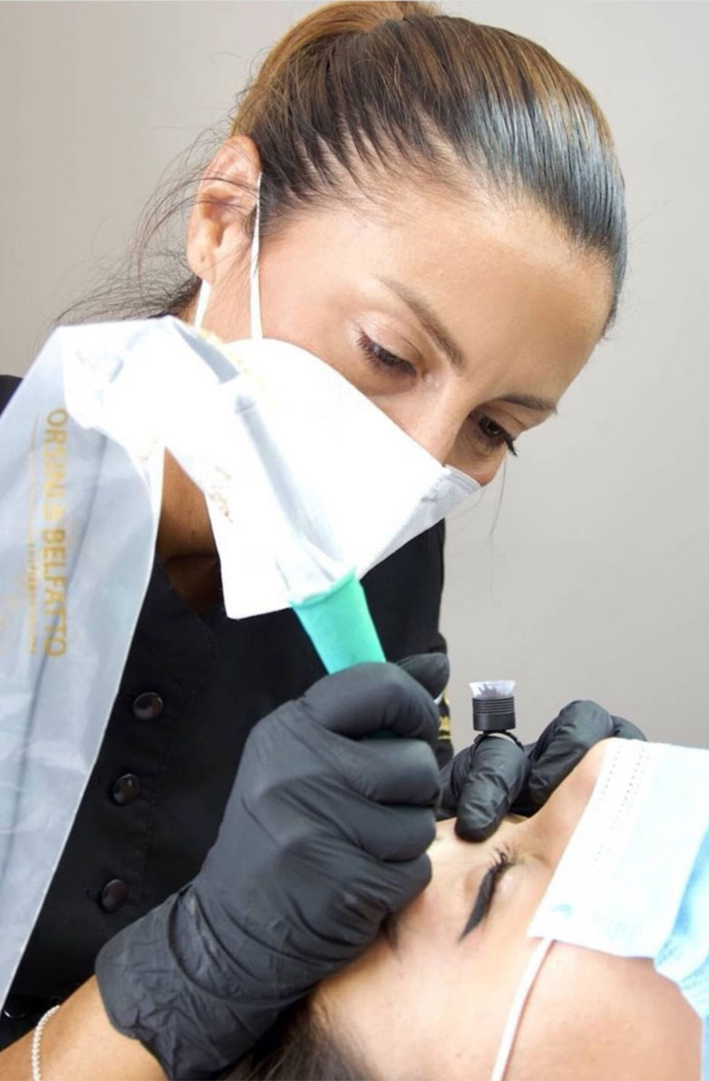 Si realizza con tecniche simili a quelle del classico tatuaggio ma con strumenti più delicati e con pigmenti bioriassorbibili ovvero destinati ad essere eliminati in maniera progressiva dall’organismo attraverso un’azione di fagocitosi. Il motivo per cui vengono utilizzati pigmenti di questo tipo è molto importante ma non sempre compreso e cioè quello di evitare di avere sul viso un lavoro che non possa essere modificato in termini di forma e colore nel tempo. Innanzitutto il viso in particolare è (ahimè) destinato a mutare a causa dell’inevitabile processo di invecchiamento per cui dobbiamo poter adattare liberamente il nostro trucco permanente a questi cambiamenti. In secondo luogo qualunque pigmento introdotto nel derma è comunque soggetto a variazioni nel tempo (chi non ha mai notato il nero di un tattoo virare verso il blu/verde?) a causa dell’azione dei raggi solari per cui è assolutamente necessario adottare i pigmenti idonei.